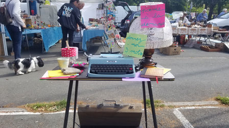 Sur un petit mobilier en Formica, l’autrice Philomène pose sa machine Olivetti des années 50’. Elle propose d’écrire des poèmes et demande aux passants 3 mots lui servant de contrainte d’écriture. Il ne faut pas réfléchir, Philomène a besoin de spontanéité, elle est bien plus inspirée par les mots « Grille-pain » et « couscous » que par « espoir » et « liberté ».